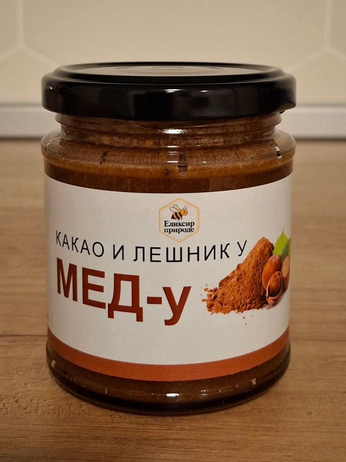 Мед са додатком какао праха и млевеног лешника представља изузетан производ – снажан извор здравих масних киселина и гвожђа, који доприноси јачању крвне слике. Његова кремаста структура чини га атрактивним као намаз и савршеном заменом за индустријске слаткише. Ово је прави здрави ужитак: ароматичан, укусан и хранљив.